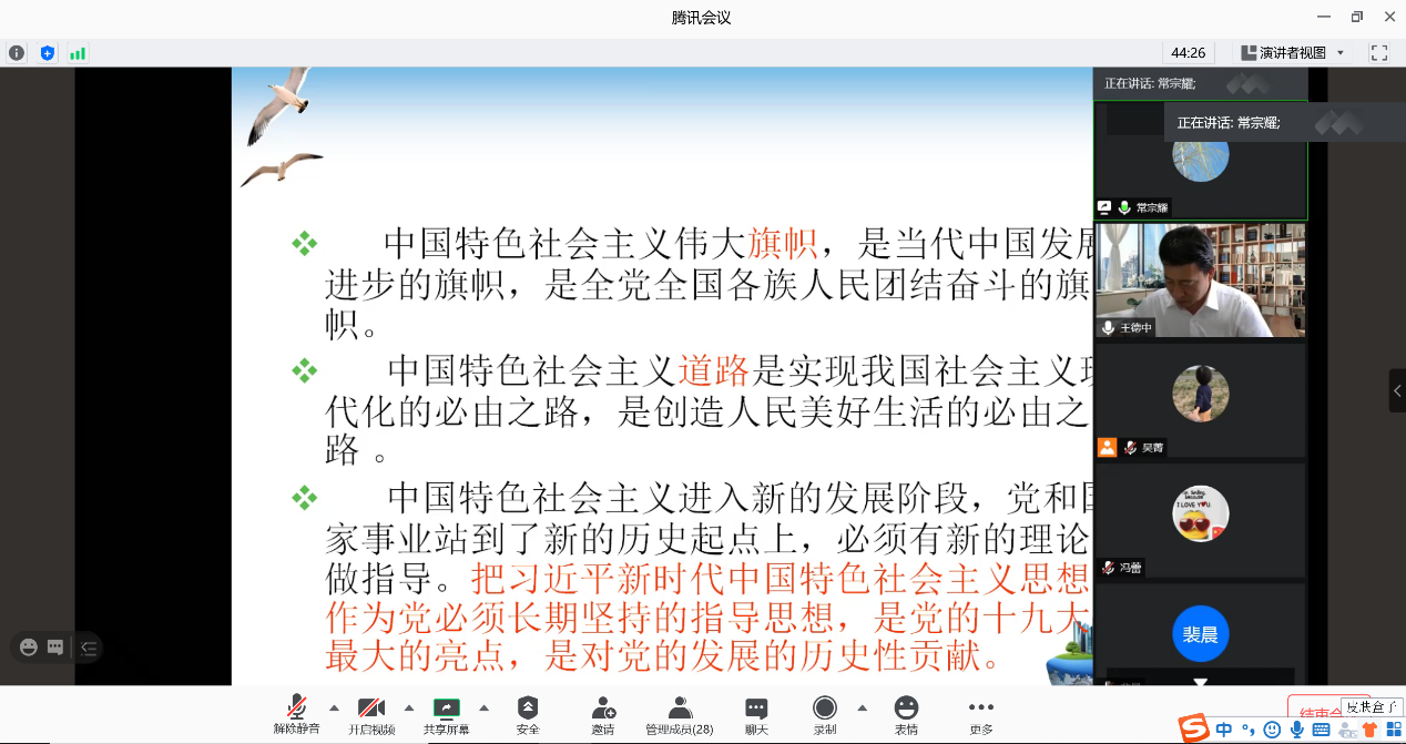 2020年9月15日下午,马院以视频会议的形式召开全院党员和教职工大会开展理论学习活动。全院党员和教职工参加学习。理论学习由直属党支部书记王德中主持。